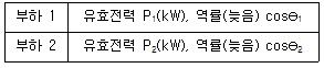 1대의 주상변압기에 부하1과 부하2가 병렬로 접속되어 있을 경우 주상변압기에 걸리는 피상전력(kVA)은?