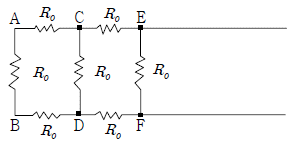 한 변의 저항이 Ro인 그림과 같은 무한히 긴 회로에서 AB 간의 합성저항은 어떻게 되는가?