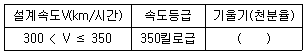 한 경간을 기준으로 해당 구간의 설계속도가 아래와 같을 때, 전차선의 기울기는?