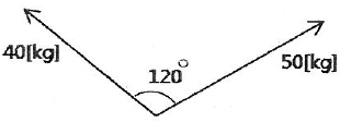 그림과 같이 한 점에 작용하는 두 힘의 크기가 40kg과 50kg일때 합력(kg)은?