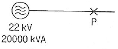 그림과 같은 22kV 3상 3선식 전선로의 P점에 단락이 발생하였다면 3상 단락전류는 약 몇 A인가? (단, %리액턴스는 8%이며 저항분은 무시한다.)
