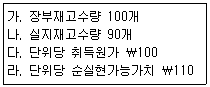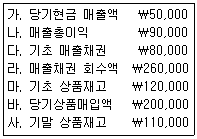 다음 자료에 근거한 기말 재무상태표상에 기록되는 재고자산의 장부금액은 얼마인가?