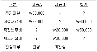 다음은 제조간접비를 직접노무비의 일정비율로 예정배부하는 ㈜상공공업 제품A와 B의 내용이며, 그 외의 다른 작업은 없다. 다음 설명 중 옳지 않은 것은?