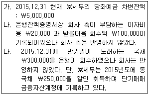 다음은 2015년 K사의 거래내역이다. 회계처리 과정에서 나타나지 않는 계정과목은 무엇인가?