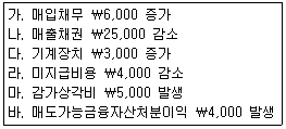 (주)전산의 2015년도 포괄손익계산서상 당기순이익은 ₩80,000이다. 다음은 전기 말에 비하여 증감된 자산·부채와 당기에 발생된 비용이다. 이 경우 현금흐름표상의 영업활동으로 인한 현금흐름은 얼마인가? (단, 영업활동 현금흐름 산정방법은 간접법에 의한다.)