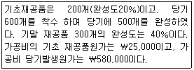 (주)상공의 다음 자료에 의하여 선입선출법에 의한 가공비의 완성품 환산량 단위 당 원가는 얼마인가?