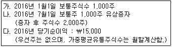 다음의 자료를 기초로 계산한 주당순이익은 얼마인가?
