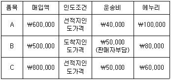 회사의 상품거래가 다음과 같을 때 상품의 매출원가는 얼마인가?