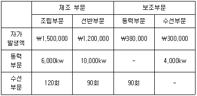 (주)대한은 A, B 두 공정을 이용하여 #111제품과 #112제품 등을 생산하며, 제조간접비는 직접노동시간을 기준으로 배부한다. #111 제품의 A공정과 B공정의 제조간접비로 옳은 것은?