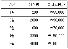 (주)대한의 지난 5개월간 생산자료는 다음과 같다. 6월의 계획 생산량이 5,000개 일 때 고저점법을 활용한 총 제조원가는 얼마인가?