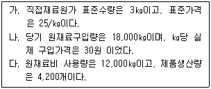 [원가관리회계] (주)상공은 표준원가계산제도를 채택하고 있으며 제품단위당 직접재료원가 표준원가는 다음과 같은 경우 사용시점기준의 가격차이와 수량차이는?