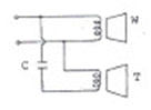 [전자측정] 다음 그림은 저음 전용 스피커(W)와 고음전용 스피커(T)를 연결한 것이다. 이에 관한 설명 중 옳지 않은 것은?