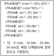 다음 <보기>와 같이 프레임을 나누면 브라우저에 어떤 모양으로 나타나는가?