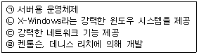 [컴퓨터 및 통신 일반] 다음 중 <보기>와 같은 4가지 특징을 갖는 운영체제는 무엇인가?