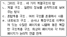 다음 중 다음 웹사이트의 구조와 설명이 바르게 짝지어진 것만 나열한 것은?