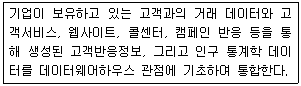 다음 글상자에서 설명하고 있는 CRM의 정보기술 요소는?