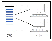 다음 글상자에서 구성된 컴퓨팅 구조에 대한 일반적인 설명으로 가장 올바르지 않은 것은?(단, (가), (나)는 컴퓨터시스템이며 인터넷으로 연결되어 있다.)