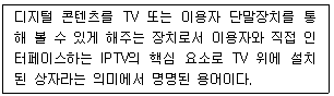 IPTV 서비스의 구성요소 중 보기의 설명에 대한 것으로 적절한 것은?