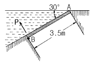 [조선유체역학] 그림과 같이 0.6 m×3.5 m 의 수문 평판 A B 를 수면과 30° 각도로 설치해 놓았다. A 점에서 힌지(hinge)로 연결되어 있으면 이 문을 B 점에서 열기위한 힘 P (수문에 수직)는?