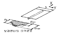 [선체의장 및 선체구조역학] 보강재가 중앙에 붙어 있는 보강판 내의 X방향의 인장 응력분포가 그림과 같고, 최대응력 σmax = 20kg/mm2, 최소응력 σmin = 16kg/mm2, 평균응력 σa = 18kg/mm2 일 때, 유효 폭은 보강판의 폭 b의 몇 % 인가?