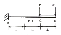 [재료역학] 그림과 같이 전체 길이가 3L인 외팔보에 하중 P가 B점과 C점에 작용할 때 자유단 B에서의 처짐량은? (단, 보의 굽힘강성 EI는 일정하고, 자중은 무시한다.)