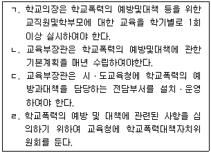 학교폭력예방 및 대책에 관한 법률상 옳지 않은 것을 모두 고른 것은?