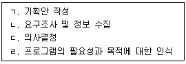 청소년활동프로그램 기획단계의 순서로 옳은 것은?