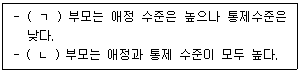 바움린드(D. Baumrind)의 부모양육 유형에 관한 내용이다. ( )에 들어갈 내용으로 옳은 것은?