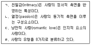 스턴버그(R. Sternberg)가 제안한 사랑의 삼각형 이론에 관한 설명으로 옳은 것을 모두 고른 것은?