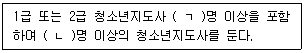 청소년 기본법령상 청소년특화시설의 청소년지도사 배치기준에 관한 내용이다. ( )에 들어갈 내용은?
