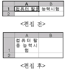편집 전 엑셀 시트의 [A1] 셀에 입력된 내용이 편집 후 오른쪽 그림과 같이 수정되었다. 이때 적용된 셀 서식은?