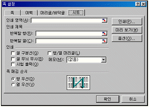 다음은 [쪽 설정]의 [시트] 탭의 내용이다. 다음 설명 중 옳지 않은 것은?