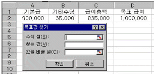 아래의 시트에서 급여총액은 기본급+기타수당으로 구할 때, 목표값 찾기를 이용하여 급여총액이 1,000,000이 되기 위해서는 기타수당이 얼마가 되어야 하는지를 알아보기 위한 설명으로 옳지 않은 것은?
