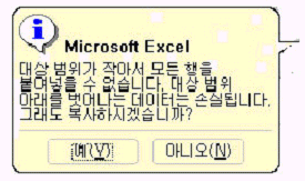 고급 필터를 이용하여 원하는 레코드를 검색하려고 할 때, 아래 그림과 같은 메시지가 나타났다. 이러한 메시지가 나타나지 않게 하려면 고급 필터의 옵션 지정시 어느 범위를 충분하게 지정해 주어야 하는가?