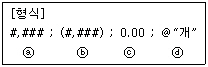 아래의 조건이 없는 사용자 정의 서식 코드를 사용하면 한 번에 네가지의 표식 형식을 지정할 수 있으며, 각 항목은 세미콜론(;)으로 구분한다. 다음 중 ⓒ항목에 해당하는 데이터의 조건으로 옳은 것은?