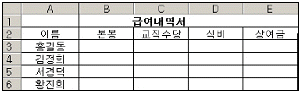아래의 시트에서 오른쪽 방향으로 화면을 이동했을 때에도 [A]열의 이름영역이 항상 보이도록 하기 위한 기능으로 옳은 것은?