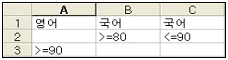 다음 중 [A1:C3] 영역과 같이 조건을 작성한 후 고급필터를 실행 했을 때, 추출되는 데이터에 관한 설명으로 옳은 것은?