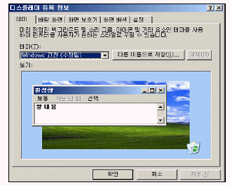 다음 중 한글 Windows XP에서 [디스플레이 등록정보] 창의 각 탭 메뉴에 대한 설명으로 옳지 않은 것은?