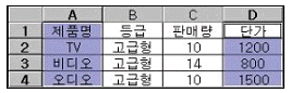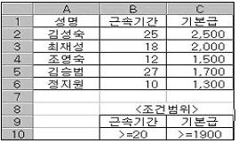 아래 워크시트의 데이터에서 조건범위를 [B9:C10]으로 고급필터를 실행했을 때 추출된 결과로 옳은 것은?