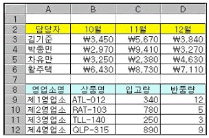 아래 그림과 같이 두개의 표를 다른 페이지로 따로 인쇄하는 방법에 대한 설명으로 옳지 않은 것은?