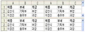 창 나누기는 데이터의 양이 많아 필요한 데이터를 한 화면으로 보기 어려운 경우, 서로 떨어져 있는 데이터를 한 화면에 표시하기 위해 이용되는 기능이다. 아래 그림과 같이 창 나누기를 하려면 먼저 셀 포인터를 어느 셀에 위치시켜야 하는가?