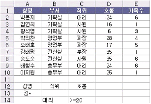 아래 시트와 같이 고급 필터를 실행 했을 경우 추출되지 않는 성명은?