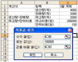 다음의 그림과 같은 상태에서 [확인]버튼을 눌러서 얻을 수 있는 목표값은 무엇인가?