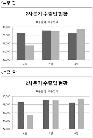 다음 중 아래의 <수정 전> 차트를 <수정 후> 차트와 같이 변경하려고 할 때 사용해야 할 서식은?
