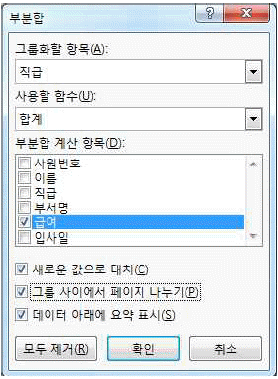 다음 중 아래의 부분합 대화상자에 대한 설명으로 옳지 않은 것은?