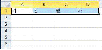 다음 중 [A1:D1] 영역을 선택한 후 채우기 핸들을 이용하여 아래쪽으로 드래그하였을 때, 데이터가 변하지 않고 같은 데이터로 채워지는 것은?