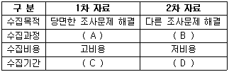 다음은 1차 자료와 2차 자료를 비교한 것이다. ( ) 안에 들어갈 알맞은 것은?