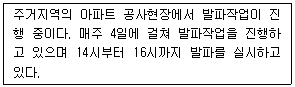 [발파공학] 아래와 같은 조건에서 발파를 실시할 때 적용되는 생활진동 규제기준은?